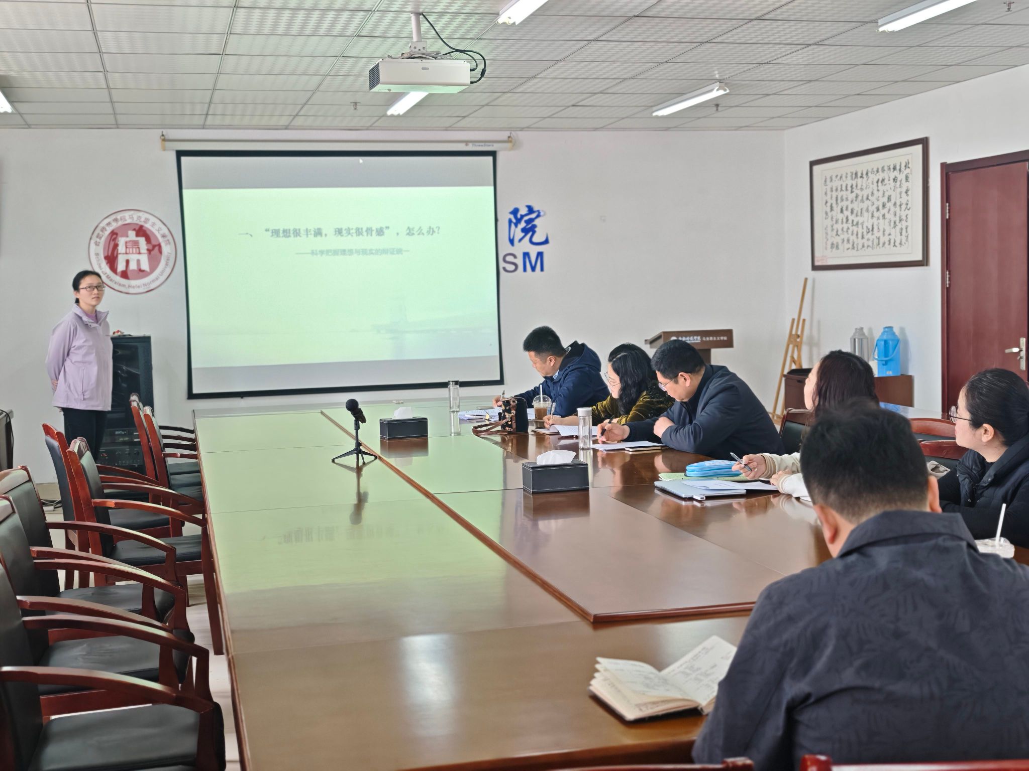 为进一步提升教学质量和新进教师教学水平,3月25日,思想道德与法治教研室在行知楼1610室开展了集体备课会。会议由教研室主任王欣主持,教研室全体教师参与研讨。
